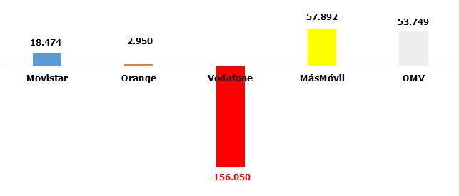 Echar la vista un año atrás nos da una gran foto descriptiva: OMV imparables; MásMóvil, con márgenes envidiables pero en decadencia; las tres antiguas “grandes operadoras”, en pérdidas netas: