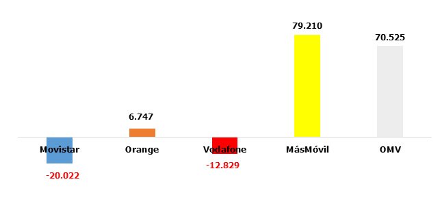 Sin grandes novedades con meses anteriores, sin olvidar en cualquier caso el efecto estadístico de las OMV (compra de Euskatel y otras):