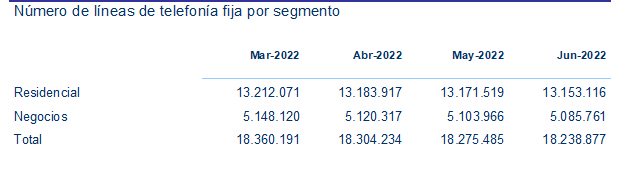 Treinta y seis mil líneas menos con respecto a mayo, a partes iguales entre negocios y residencial.