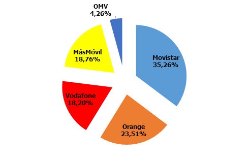 Cuotas de mercado: pocos cambios, aunque se estabilizan las tendencias, con las OMV ya atisbando el 8% y Orange y Vodafone cerca del empate técnico:
