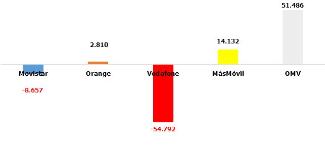 Continúa Movistar en su soledad negativa, pero recortando el diferencia. Las OMV, imparables: