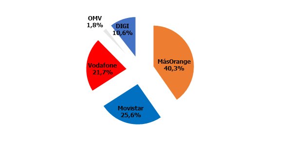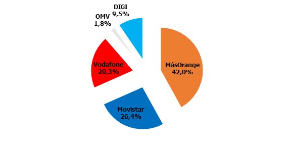 Cuotas de mercado: DIGI irrumpe con un poderoso 10%, dejando a las OMV en un 5%. MásOrange pierde el 40%.