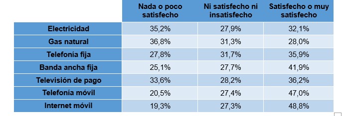 Como en todos los últimos trimestres, la valoración subjetiva que hacen los consumidores sobre nuestros servicios se revela como muy superior a los relacionados con el gas o la electricidad, hasta el punto de que todos nuestros servicios son mejor valorados que aquellos.