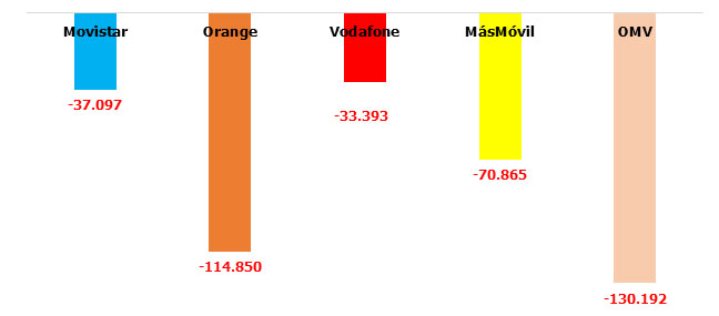 Las OMV, que si tienen en el prepago unos de sus graneros, sufren un fuerte varapalo, seguidos de Orange y MásMóvil: