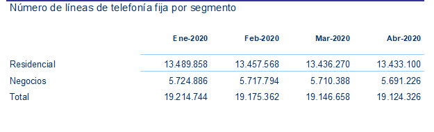 También sufre los efectos del coronavirus: -22.000 líneas menos, diecinueve mil de ellas en el segmento de negocios. Desde inicios de años, el total acumulado asciende a -90.000 líneas (56.000 del segmento residencial):