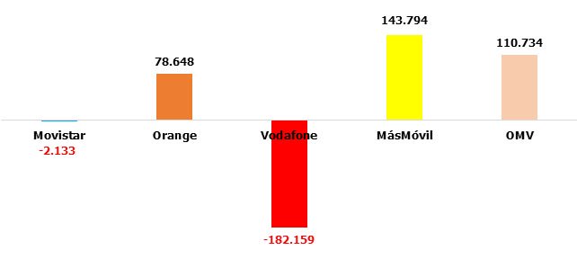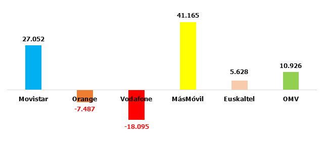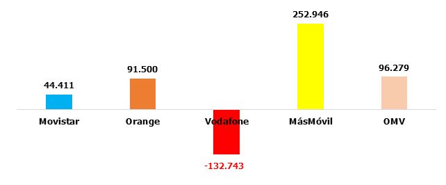 Movistar entra en negativo y MásMóvil y las OMV superan las 100.000 altas netas: