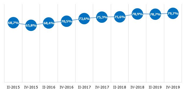 Individuos que utilizan Internet en su teléfono móvil (no incluye aquellos que se conectan únicamente usando wifi inalámbrico) (porcentaje de individuos), II-2020