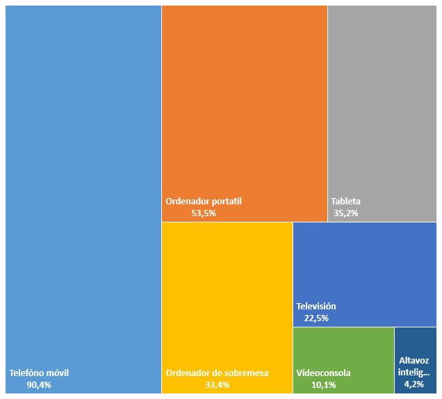 Dispositivos con los que el usuario se suele conectar a Internet (porcentaje de individuos)