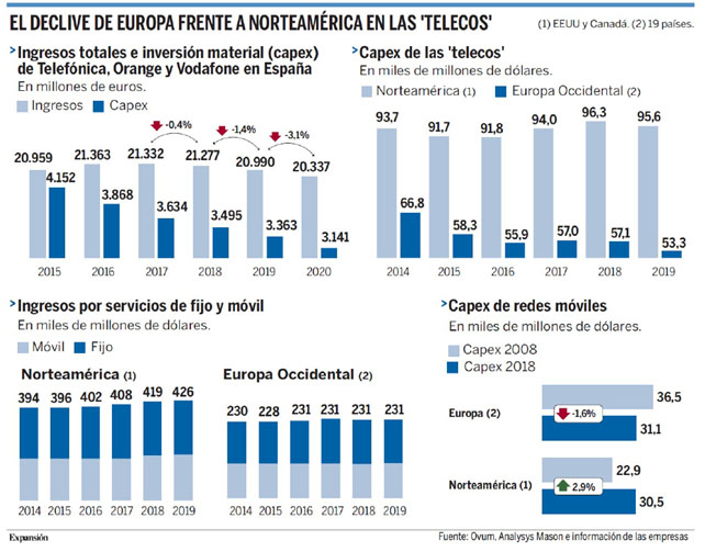 Sin embargo, poco o nada se habla (salvo de celebérrimo affaire Huawei5https://www.elconfidencial.com/tecnologia/2020-07-08/geopolitica-5g-huawei-europa_2670656/) de las diferencias entre Europa y el resto del mundo en el sector telco. O dicho de una manera más precisa, de cómo la nefasta y obsoleta legislación europea (y por ende, la española), está lastrando el desarrollo de la conectividad imprescindible para lograr la ansiada “soberanía tecnológica” para Europa.