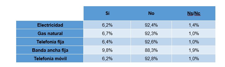 La encuesta se centra en la valoración subjetiva que hacen los consumidores sobre servicios tradicionales como energía (electricidad, gas natural) y telecomunicaciones (banda ancha, Internet móvil, telefonía fija y móvil y TV de pago). Estas son, a nuestro entender, las principales conclusiones: