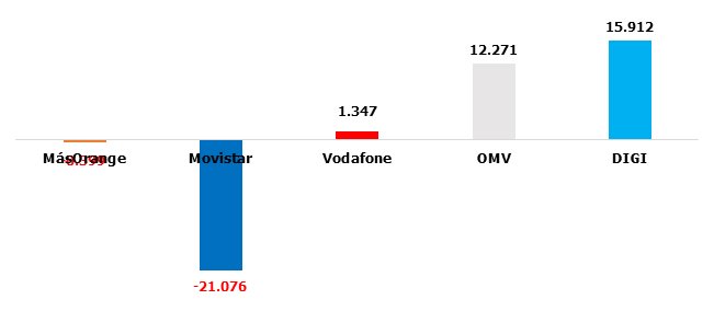 Segmento de las telecos que puede denominarse “territorio DIGI”.  Vuelven a sufrir mucho las OMV y Vodafone tampoco logra remotar. Movistar aquí si consigue destacar: