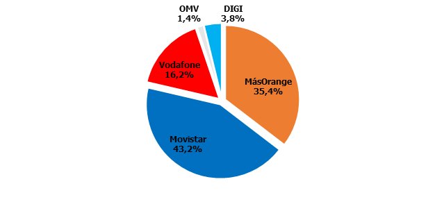 Cuotas de mercado: MásOrange prosigue con su pérdida de cuota, que ya amenaza a su 37%. Lo mismo ocurre con Movistar: