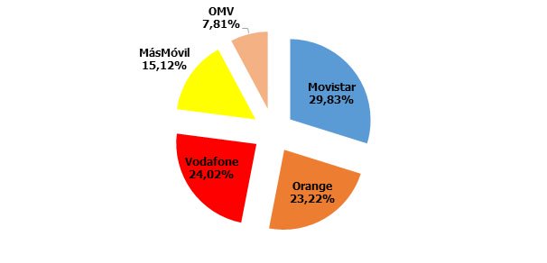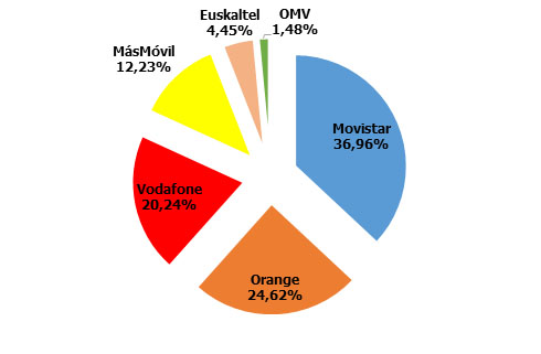 La mala racha de Movistar se hace nota, perdiendo el 37%, y el avance lo protagonizan las OMV, que ya llegan al 1,5% de cuota: