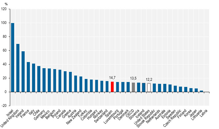 La comparativa internacional no sitúa a EEUU en un buen lugar en términos de conectividad de alta velocidad. Las estadísticas de la OCDE confirman su retraso, con sólo un 16,5% de conexiones a Internet por fibra, lejos de la media mundial (29,22%) y a años luz de España (70%). Además, su crecimiento interanual en fibra también estaría por debajo de la media (y de la española, a pesar de nuestra gran capilaridad).