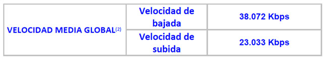 Velocidad media global del servicio móvil de acceso a Internet: Se obtiene ponderando los valores de velocidad media publicados por cada operador con el número total de clientes para cada servicio de acceso a Internet.
