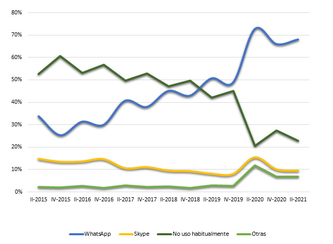 Servicios de mensajería online usados habitualmente (porcentaje de individuos), II-2021