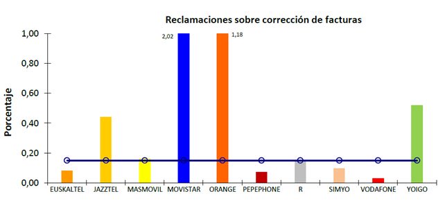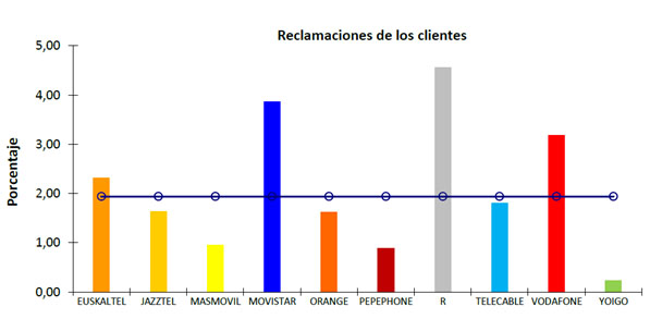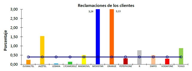Operador por debajo de la media en más ocasiones: MásMóvil, Vodafone y Simyo