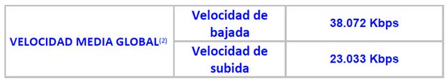 Velocidad media global del servicio móvil de acceso a Internet: Se obtiene ponderando los valores de velocidad media publicados por cada operador con el número total de clientes para cada servicio de acceso a Internet.