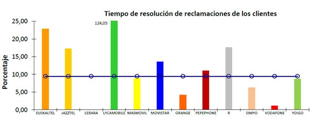 Hito más destacable: Que Lycamobile necesite 124 horas para resolver una reclamación, por las nueve horas de media del resto de operadores
