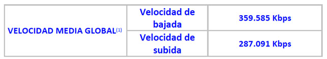 Velocidad media global del servicio móvil de acceso a Internet: Se obtiene ponderando los valores de velocidad media publicados por cada operador con el número total de clientes para cada servicio de acceso a Internet.