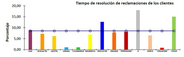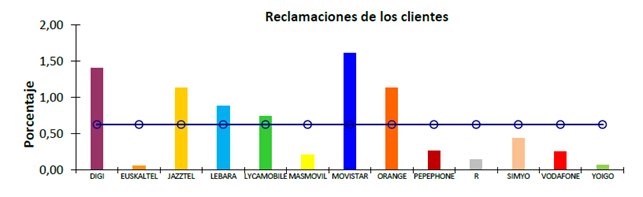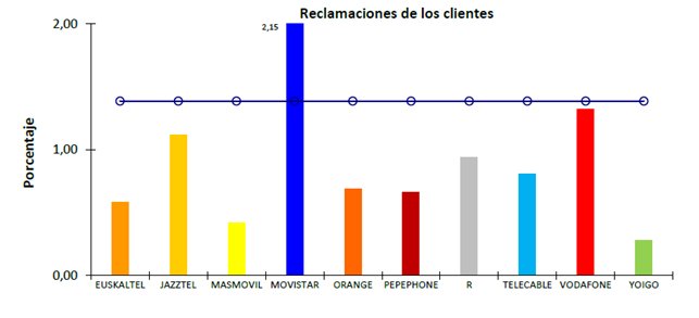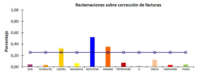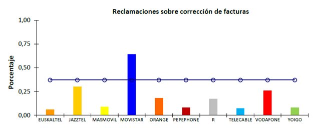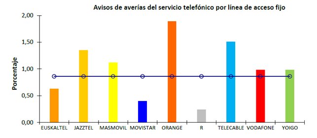 Operador por debajo de la media en más ocasiones: Euskatel, Jazztel, Pepephone, Vodafone, etc.