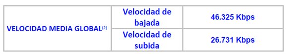 Velocidad media global del servicio móvil de acceso a Internet: Se obtiene ponderando los valores de velocidad media publicados por cada operador con el número total de clientes para cada servicio de acceso a Internet.