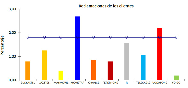 Operador por debajo de la media en más ocasiones: Movistar y Vodafone