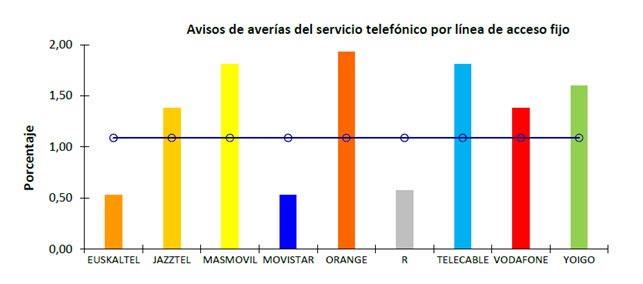 Hito más destacable: Que solo tres operadores esté por debajo de la media en averías