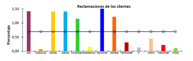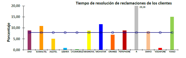 Operador por debajo de la media en más ocasiones: Pepephone, Telecable y Vodafone