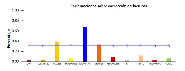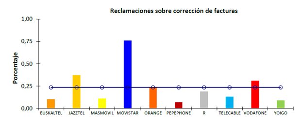 Operador por debajo de la media en más ocasiones: Movistar y Vodafone (repiten)