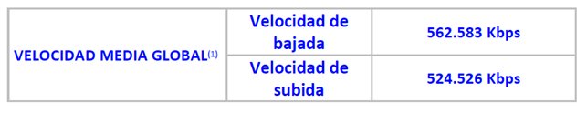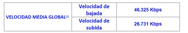 Velocidad media global del servicio móvil de acceso a Internet: Se obtiene ponderando los valores de velocidad media publicados por cada operador con el número total de clientes para cada servicio de acceso a Internet.