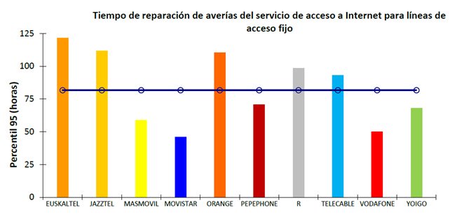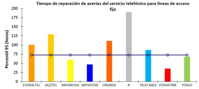 Hito más destacable: Que Euskatel no solo supere la media en todos los apartados analizados, sino que además 121 horas de media en reparar una avería.