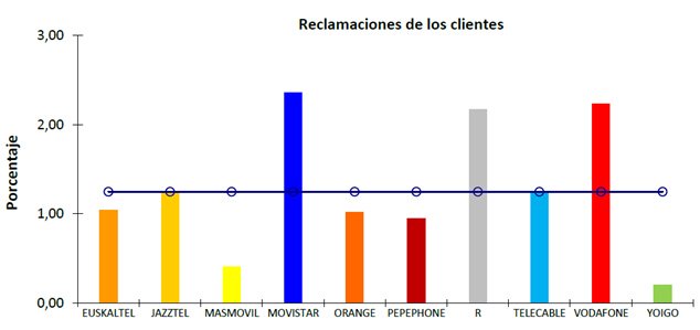 Operador por debajo de la media en más ocasiones: Euskatel, Telecable, Vodafone y Symio.