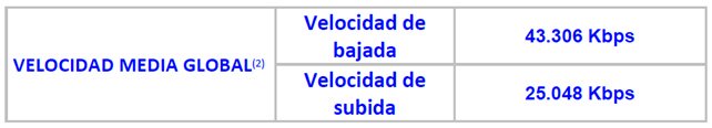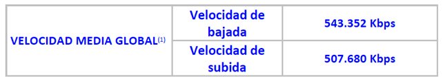 Velocidad media global del servicio móvil de acceso a Internet: Se obtiene ponderando los valores de velocidad media publicados por cada operador con el número total de clientes para cada servicio de acceso a Internet.