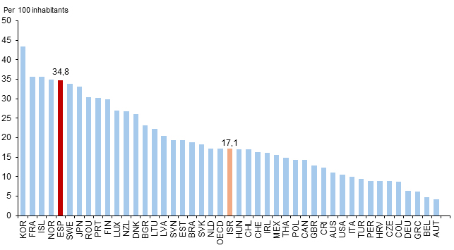En España, 9 de cada 10 diez líneas de banda ancha son por medio de fibra óptica. El doble que en la media de la OCDE. Quince puntos por encima de Francia. 60 puntos más que en el Reino Unido y Estados Unidos. 6,5 veces más que Alemania. Somos líderes europeos absolutos (excluyendo el anecdótico caso de Islandia, que si bien acredita unas décimas más, tiene una extensión cinco veces menor que la de nuestro país y donde apenas habitan 400.00 personas) y no presumimos del primer puesto por apenas un punto (Corea del Sur).