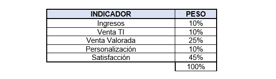 - Se incrementa el peso del indicador de Satisfacción del 40 al 45%