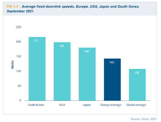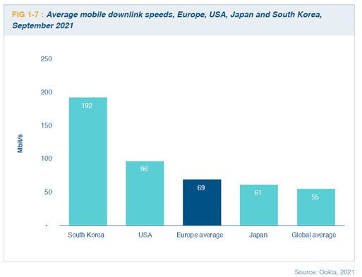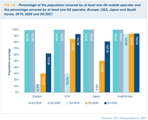 Otro tanto se puede decir del 5G, donde la cobertura en 2021 nos deja por detrás de USA y Asia: