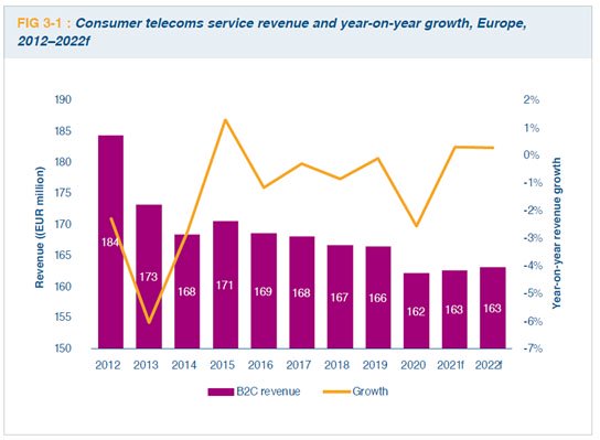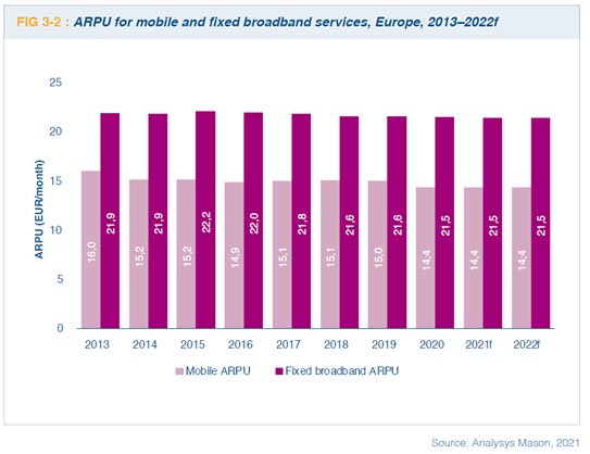 Tal situación resulta en unas malas expectativas a corto plazo, con crecimiento cero en ingresos por servicio para 2022 y un ARPU congelado: