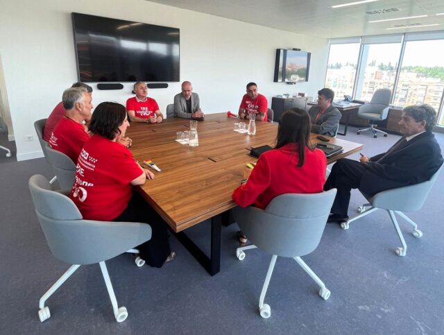 La presencia de los lideres sindicales ha facilitado una reunión de representantes de UGT y CCOO con la cúpula del Ministerio, con el Sr. Escrivá a la cabeza, en la que se ha pedido la intervención directa del ejecutivo para paliar de manera significativa el número de afectados y para que se respeten las condiciones que se han firmado en los sucesivos despidos colectivos que han afectado al sector.