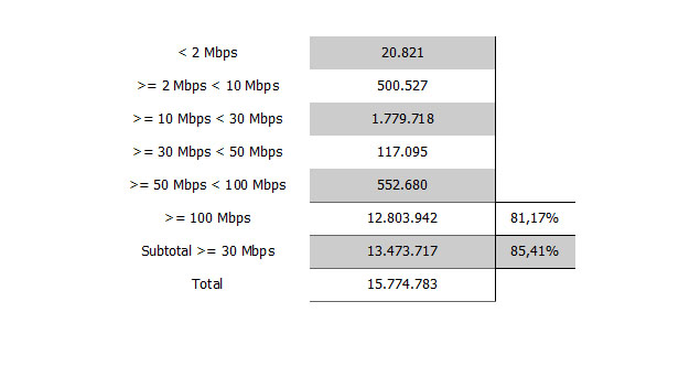 Pocas novedades en este apartado: el 81% de nuestras redes ya va a más de 100 Mbps: