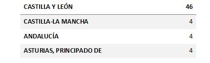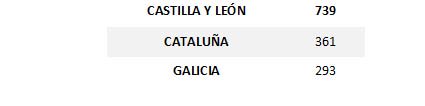 Por CCAA, Castilla y León concentra la mayoría de estas poblaciones (739, especialmente León y Burgos, con más de 120 localidades cada una), seguida de Cataluña (361 pueblos desconectados, con Lleida a la cabeza, con 121) y Galicia (293; 131 en A Coruña). En el otro extremo, las CCAA con mejores infraestructuras de fibra óptica son, por este orden, Illes Balears, La Rioja y Madrid.