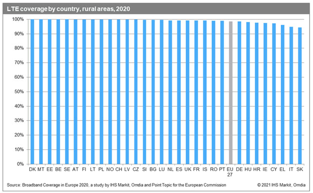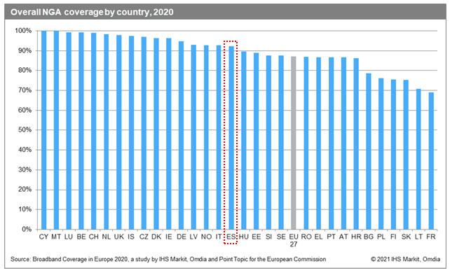 La reciente publicación de sendos informes de la Comisión Europea y la CNMC (Broadband Coverage in Europe 20201https://digital-strategy.ec.europa.eu/en/policies/desi-connectivity y Análisis geográfico de los servicios de Banda Ancha y despliegue de NGA en España 20202https://www.cnmc.es/expedientes/estadcnmc02320), con muy poca diferencia de tiempo, configura una magnífica panorámica sobre la huella de las redes, tanto la situación de España con respecto a Europa, como la propia de nuestro país, en términos geográficos y de despliegue por tecnologías. Por ello, hemos considerado interesante elaborar una secuencia de gráficas que nos permitan disfrutar de tal visión general.