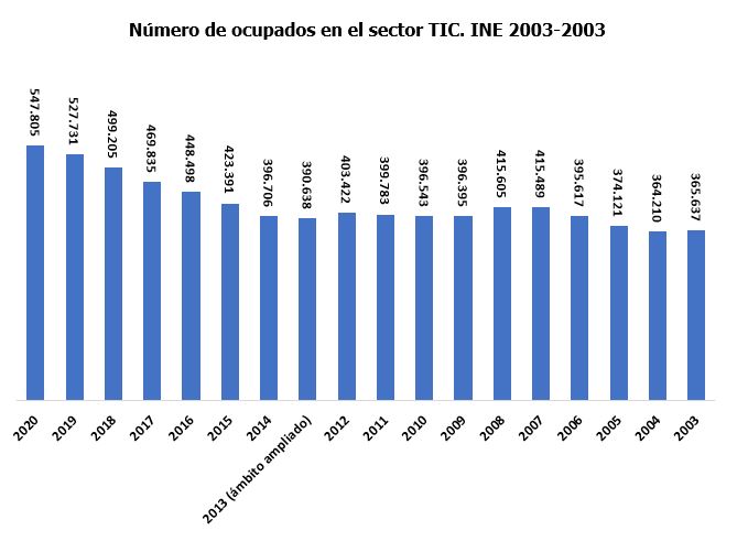 Los nuevos datos sobre el Sector de las Tecnologías de la Información y de las Comunicaciones (TIC) publicados hoy por el INE, correspondientes al año 2020, vuelven a revocar el mito de las grandes oportunidades de empleo en el Sector TIC.