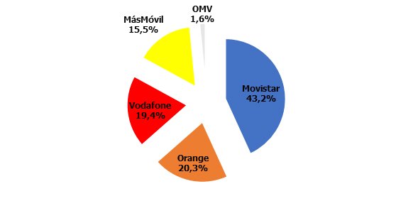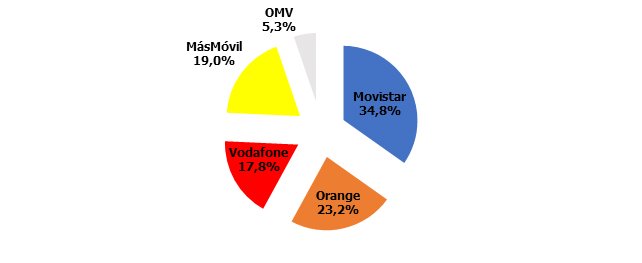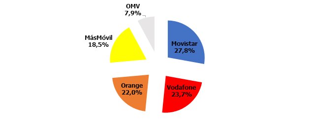 Cuotas de mercado: de nuevo otro empate entre Vodafone y Orange, aunque en este caso las OMV todavía ostentan una porción mínima: