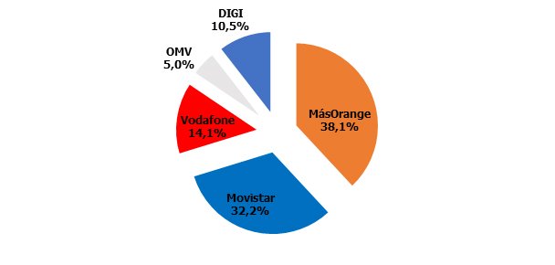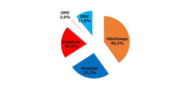 Cuotas de mercado: MásOrange comienza a ver peligrar el 38%, como las OMV el 5%.