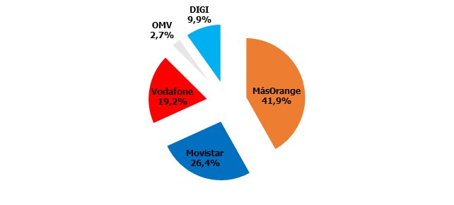 Cuotas de mercado: MásOrange comienza a ver peligrar el 38%, como las OMV el 5%.