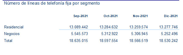 La decadencia de la telefonía se describe con una cifra y un horizonte temporal: medio millón de líneas menos en un año (-386.000 en el segmento empresarial). Curiosamente, en diciembre de 2021 se ganaron 18.000 líneas en residencial, pero el total volvió a ser negativo: -36.277 (-54.450 de negocios):