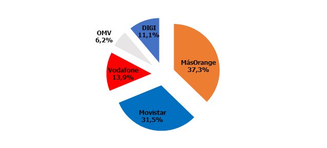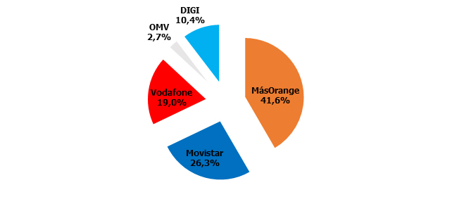 Cuotas de mercado: MásOrange prosigue con su pérdida de cuota, que ya amenaza a su 37%. Lo mismo ocurre con Movistar:
