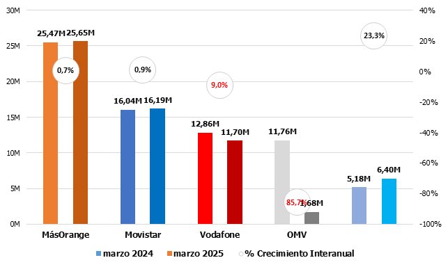 Segundo informe consecutivo con las OMV perdiendo parque en la BAM. Pugnar con DIGI no es fácil. Vodafone, al igual que en la BAF, supera con suficiencia a Movistar y MásOrange: