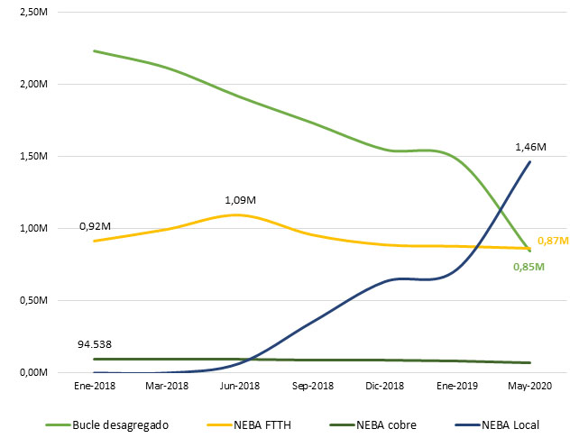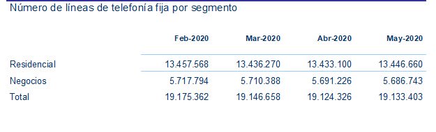 Primera vez en este año que encontramos datos positivos: +9.000 líneas, al calor del segmento residencial (¿necesidad de comunicación segura en un periodo de confinamiento?):